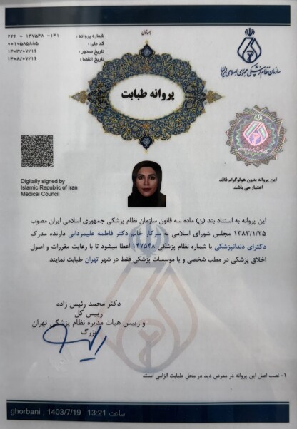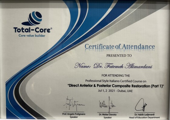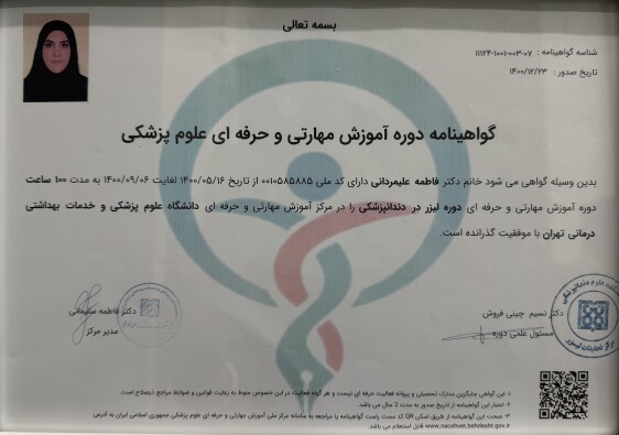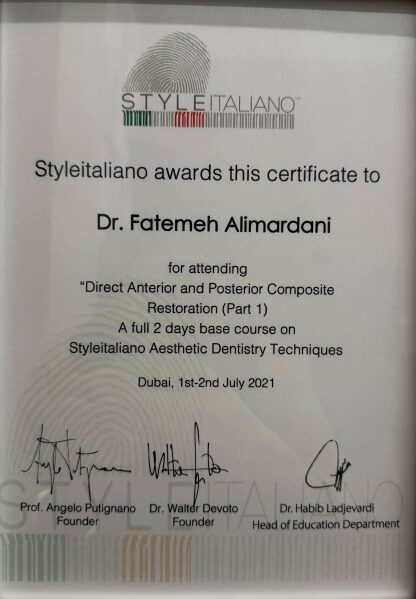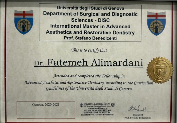 دارای فلوشیپ ترمیمی زیبایی از دانشگاه جنوا ایتالیا
